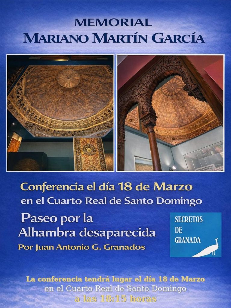 MEMORIAL MARIANO MARTÍN. ·3º JORNADA. LA ALHAMBRA DESAPARECIDA. 18.15 Hrs. Cuarto Real de Sto.l Domingo. Entrada libre hasta completar aforo.