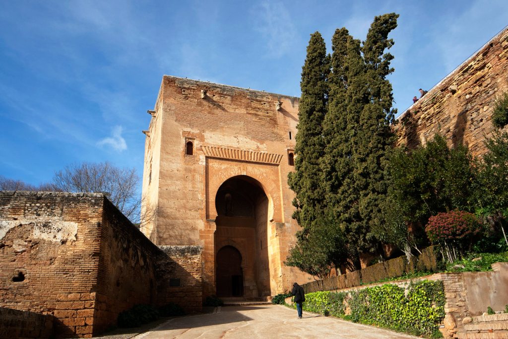 Iniciamos el recorrido en la Cuesta de los Chinos, junto al enclave de la muralla de la Torre de los Picos. Contemplamos el lienzo de la muralla sur con sus torres calahorras y sus grandes edificios palaciegos. Explicamos el sentido de la ciudad palatina más allá del concepto militar de alcazaba o recinto edilicio. Ascendemos hacia la Torre del Agua para escuchar el rumor de la Acequia Real según penetra desde la lejana presa de Jesús del Valle en los recintos palaciegos. La Torre de los Siete Suelos y la presencia de la intervención cristiana en los refuerzos artilleros y adarves hasta la Puerta de la Justicia.